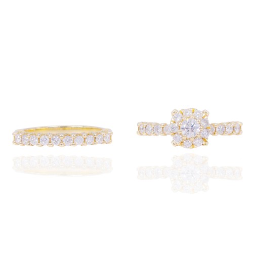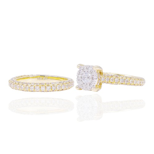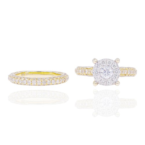 .40 CT Center Diamond Engagement Ring & Band w/ Halo and Hidden Halo 14KT Gold Yellow Gold