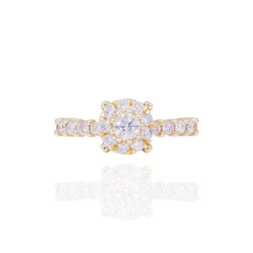 .30 Carat Round Diamond Engagement Ring w/ Halo and Hidden Halo & Band 14KT Gold Yellow Gold
