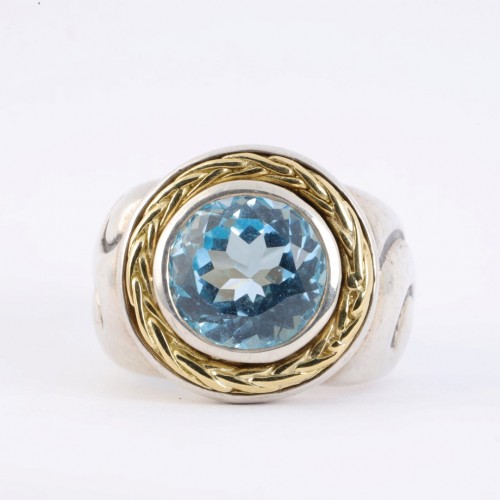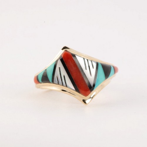 Zuni Native 14k Yellow Gold Multi Stone Inlay Ring Size 7.5 (5.85g.)