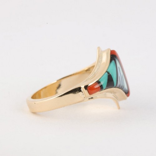 Zuni Native 14k Yellow Gold Multi Stone Inlay Ring Size 7.5 (5.85g.)