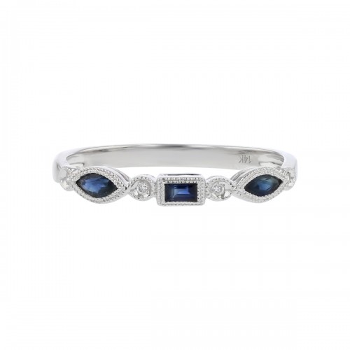 0.015ct Diamonds and 0.26ct Blue Sapphire Band in 14k White Gold