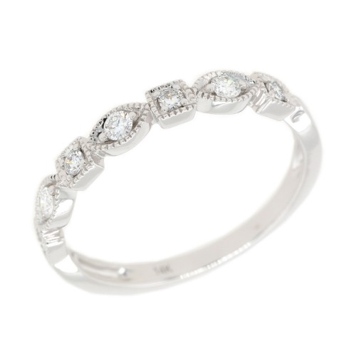 0.20ct Full Cut Diamonds With Alternating Square and Marquise Milgraine Boxes Band In 14k White Gold