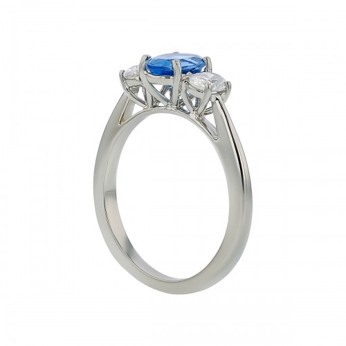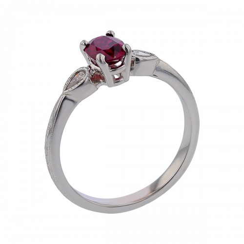 0.55ct Oval Mozambican Ruby 0.20ct Pear Shaped Diamonds 3 Stone Ring in 18k White Gold, Size 6