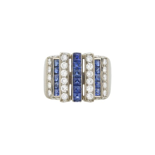 Art Deco 18k/Platinum Diamond & Sapphire Soda-Tab Link Bracelet