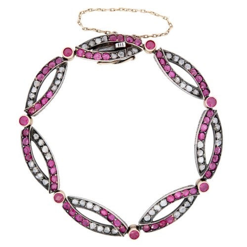 Victorian French 18k/Sterling Silver Ruby and Diamond Bracelet