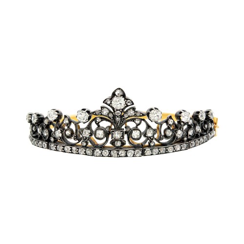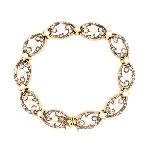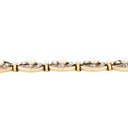 Victorian French 18k/Sterling Silver Pearl and Diamond Bracelet