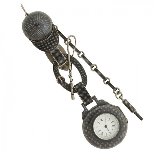 Victorian Huge Sterling & Niello Chatelaine Watch Fob Pendant