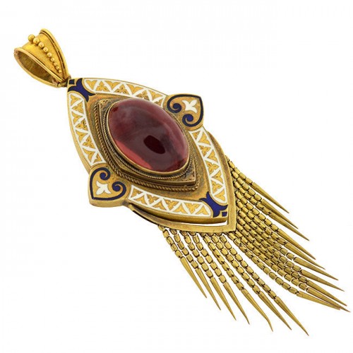 Victorian Large Brass & Bohemian Garnet Filigree Cross Pendant