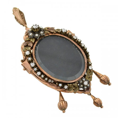 Victorian Large 15kt Pearl & Diamond Wreath Open-Faced Locket