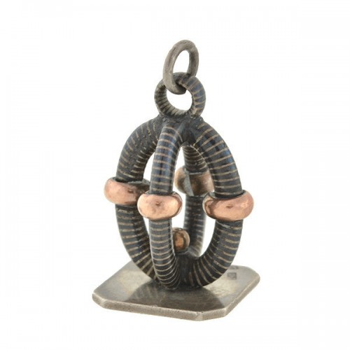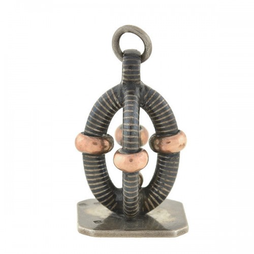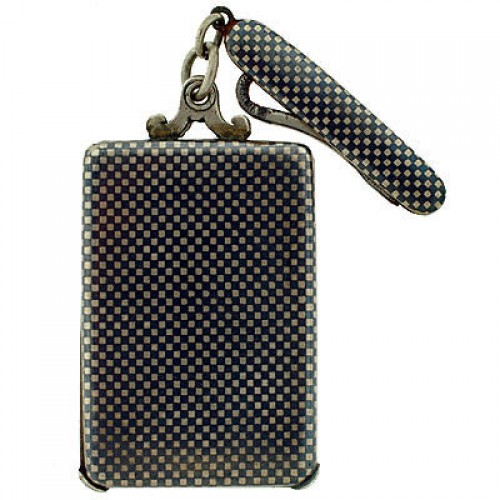 Victorian Silver & Niello Slide Mirror Locket w/ Button Hook