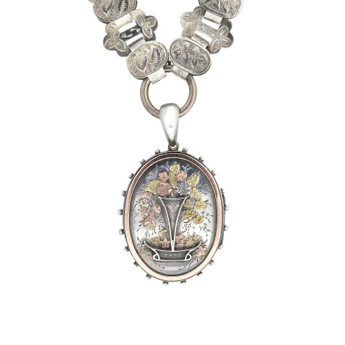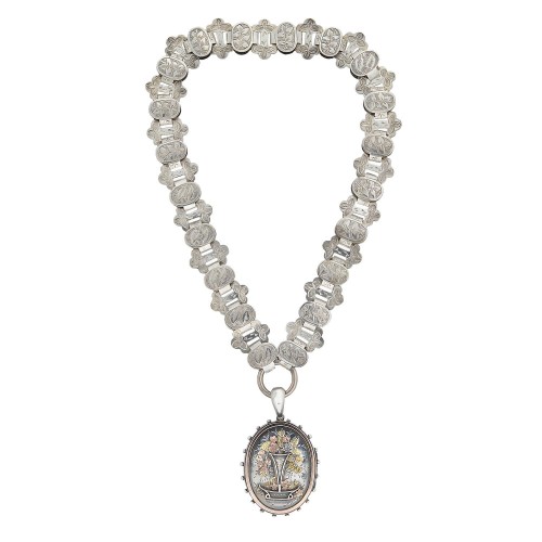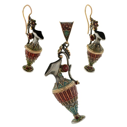 Victorian Sterling Enameled Etruscan Urn Earring + Pendant Set