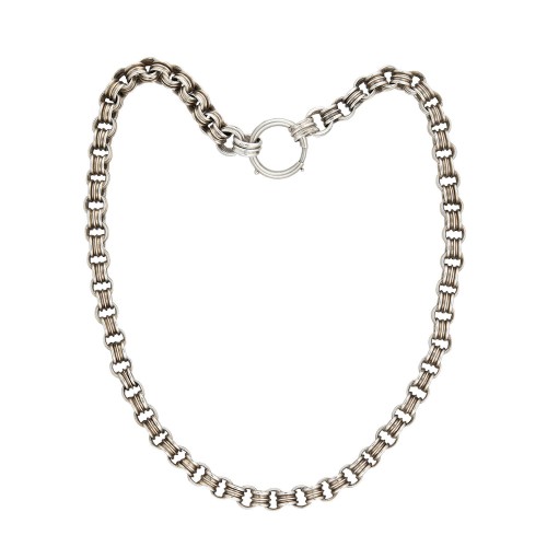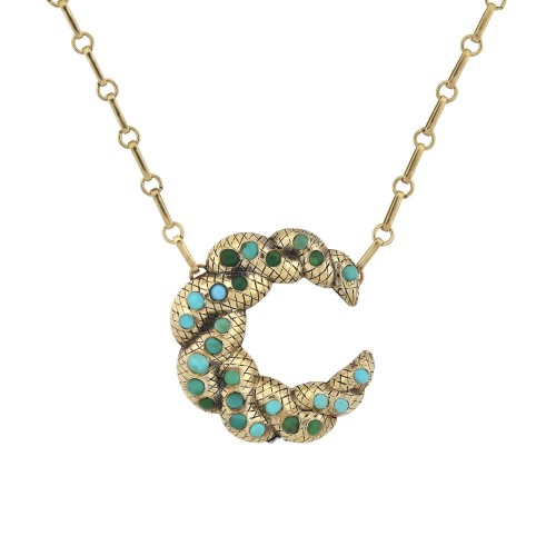 Victorian Sterling Gilt Turquoise Crescent Pendant Necklace 16″