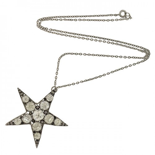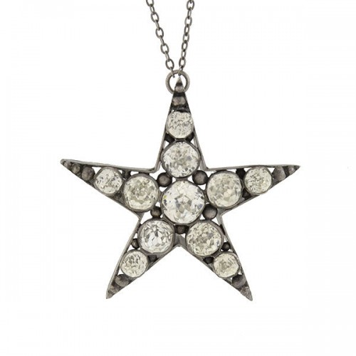 Victorian Sterling French Paste 5-Point Star Pendant Necklace