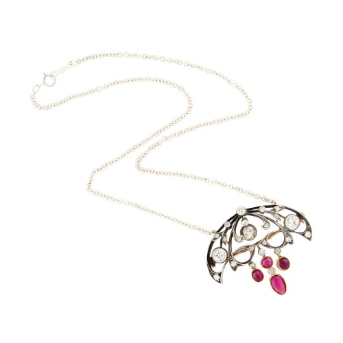 Art Nouveau 18k/Sterling Silver Diamond and Ruby Pin/Pendant