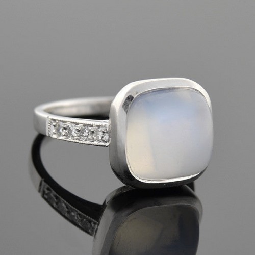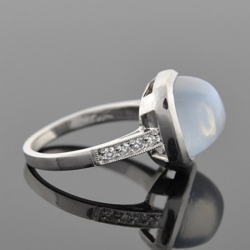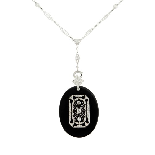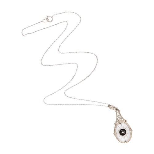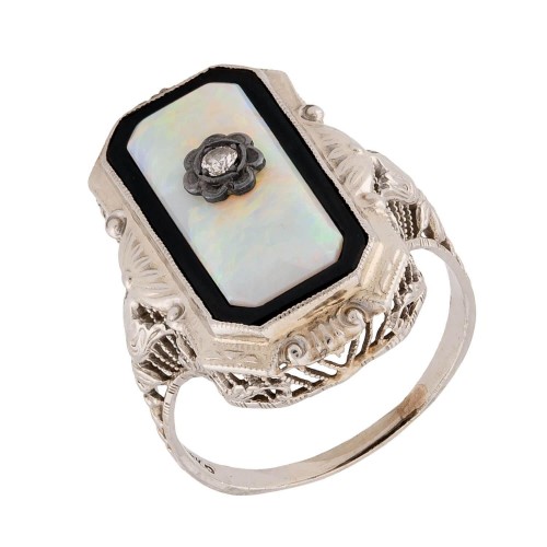 Art Deco 14k Rock Quartz Crystal, Onyx, & Diamond Navette Ring