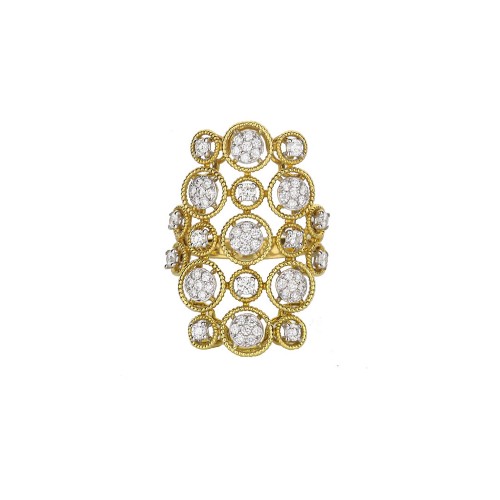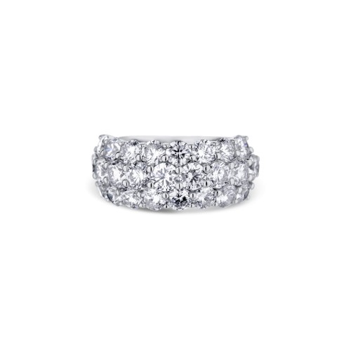 18K White Gold 3 Blue Sapphire Diamond Ring With Triple Halo