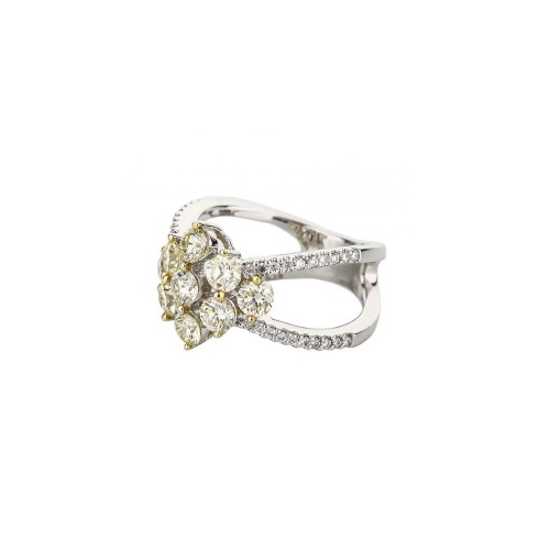 18K White Gold 3 Blue Sapphire Diamond Ring With Triple Halo
