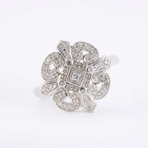 925 Silver & 14k Yellow Gold 0.11tcw Diamond Ring Size 7.25 (3.41g.)