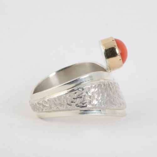 925 Silver & 14k Yellow Gold 1.04tcw Coral Ring Size 8 (7.33g.)