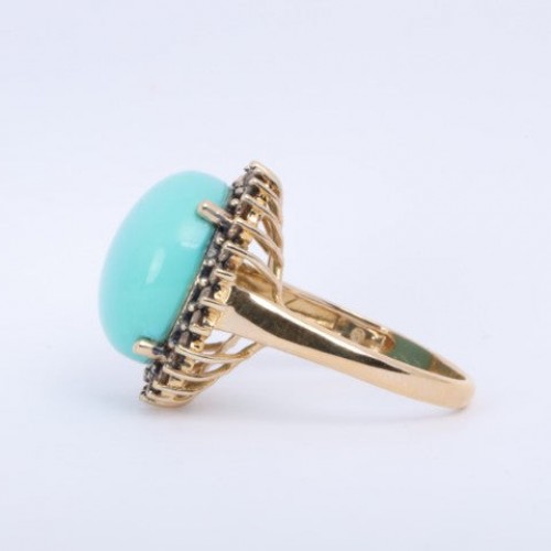 14k Yellow Gold 10.00tcw Coral Cabochon Cocktail Ring Size 8 (9.17g.)