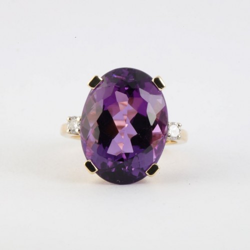 14k Yellow Gold 11.20tcw Amethyst & 0.16tcw Diamond Ring Size 6 (7.25g.)