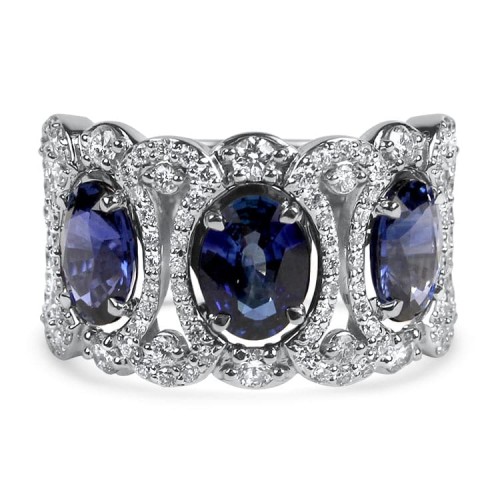 Christopher Designs 18K White Gold Sapphire and Diamond Halo Ring 6.0