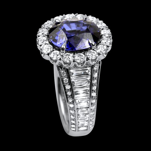 Christopher Designs Platinum Sapphire and Diamond Halo Ring 6.25