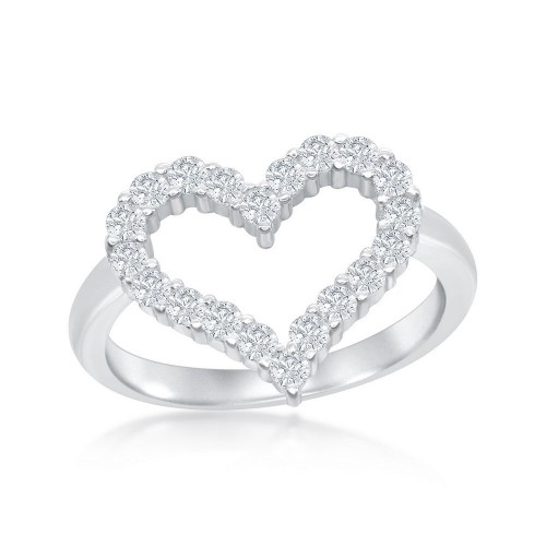 Sterling Silver Open Heart Cubic Zirconia Ring – Gold Plated