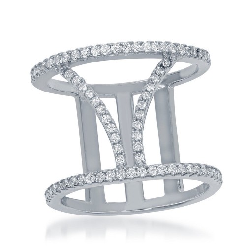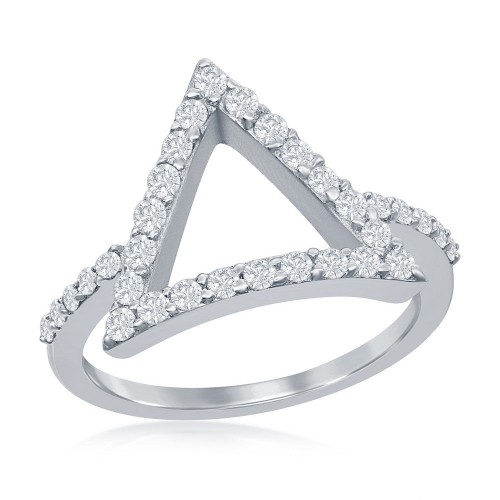 Sterling Silver Open CZ Diamond Shape with Large CZ Diamond Shaped Ring
