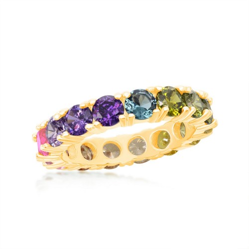 Sterling Silver Rainbow CZ 2mm Eternity Band Ring – Gold Plated