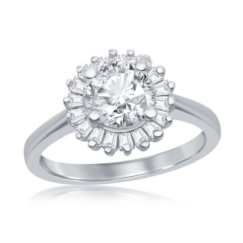 Sterling Silver Round CZ with Baguette Border Ring – Gold Plated