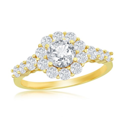 Sterling Silver Round Halo CZ Flower Design Engagement Ring – Gold Plated