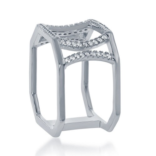 Sterling Silver Double CZ Wire with Center CZ Circle Wide Ring