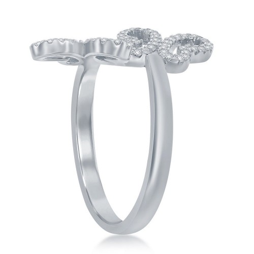 Sterling Silver Double CZ Wire with Center CZ Swirl Wide Ring
