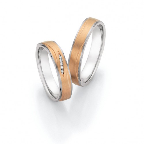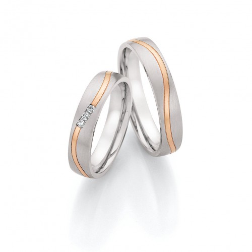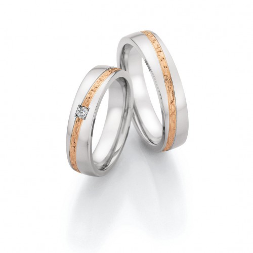 Steel Wedding Ring with Rose Gold Wavy Stripe 88/24040 Gents Size 64/V