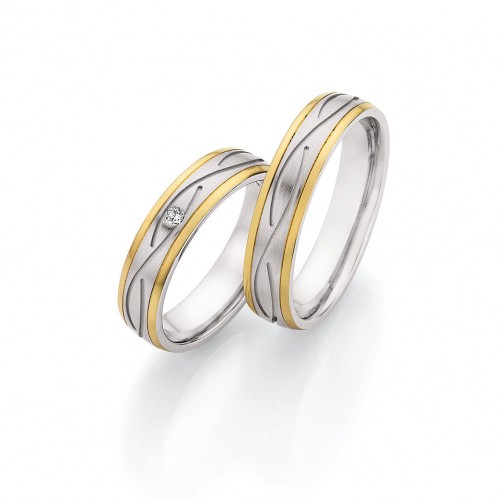 Steel Wedding Ring with Yellow Gold Edges 88/24140 Gents Size 62/T.5