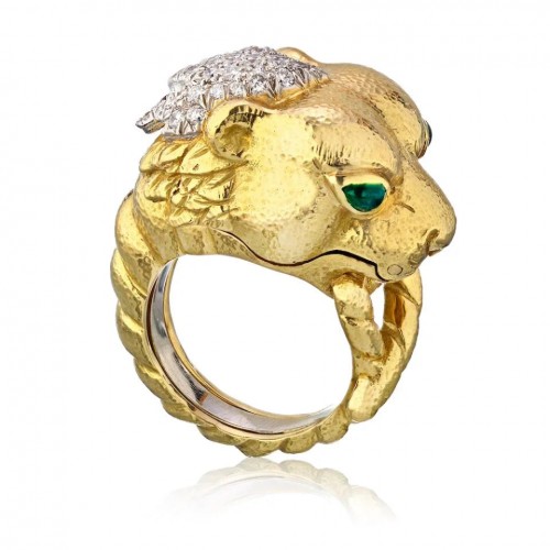David Webb Platinum & 18K Yellow Gold Dome Off White Enamel Cream Criss Cross Cocktail Ring