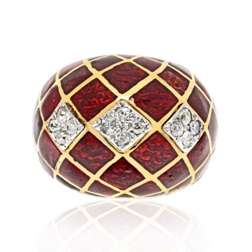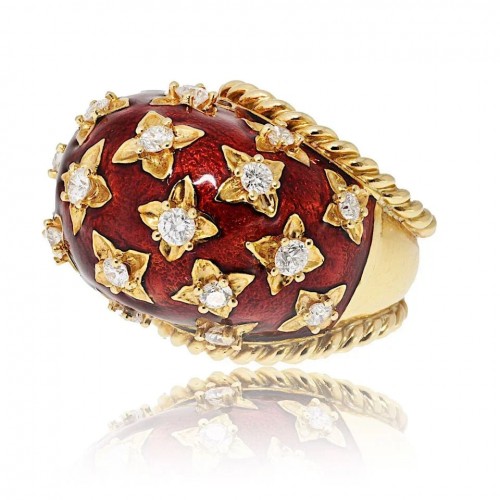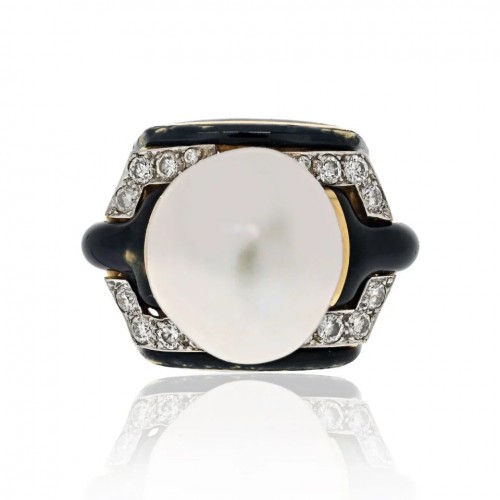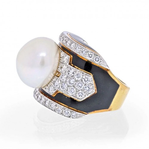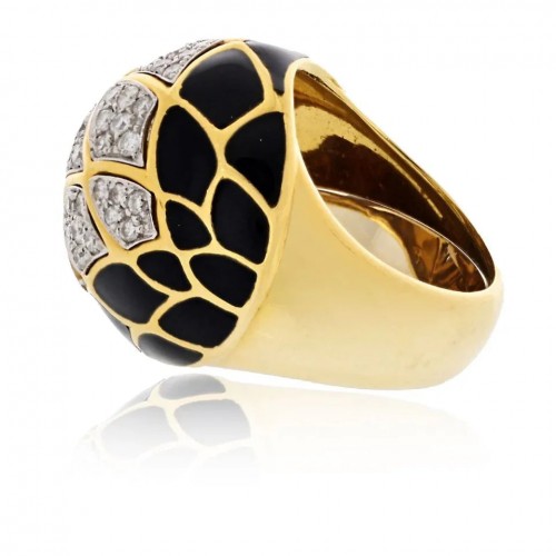 David Webb Platinum & 18K Yellow Gold Panda Bear Black And White Enamel Diamond Vintage Ring