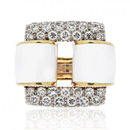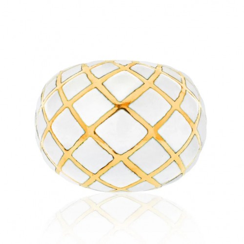 David Webb Platinum & 18K Yellow Gold White Enamel Diamonds, Sapphires Interchangeable Insert Ring
