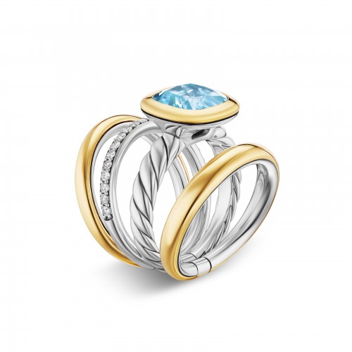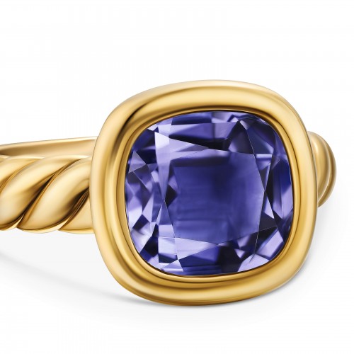 DY Mercer® Four Row Stone Ring in Sterling Silver with 18K Yellow Gold, Amethyst and Diamonds, 14mm