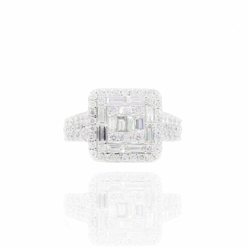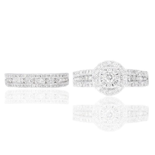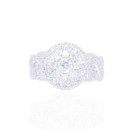 Double and Hidden Halo with Spiral Shank Engagement Ring White Gold