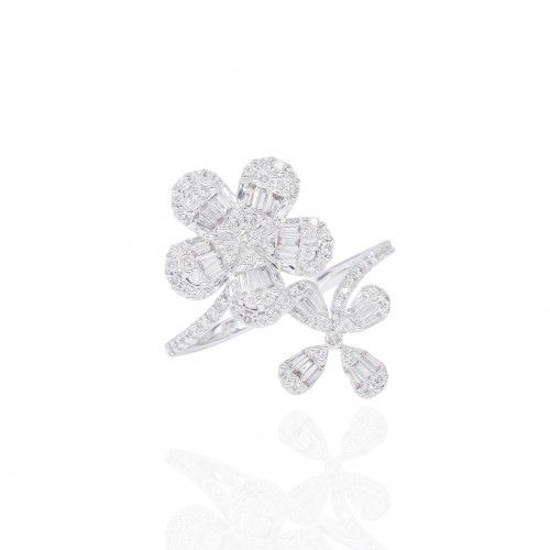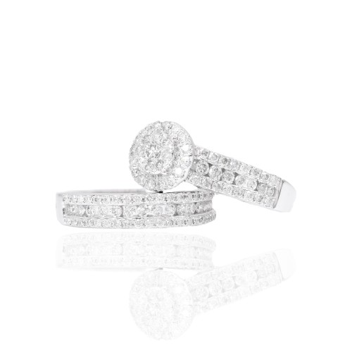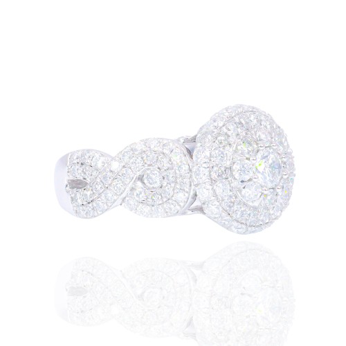 Double and Hidden Halo with Spiral Shank Engagement Ring White Gold