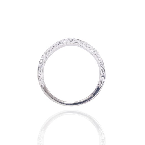 Diamond Wedding Band with Hand Design Engraving 14KT Gold White Gold