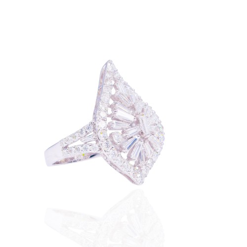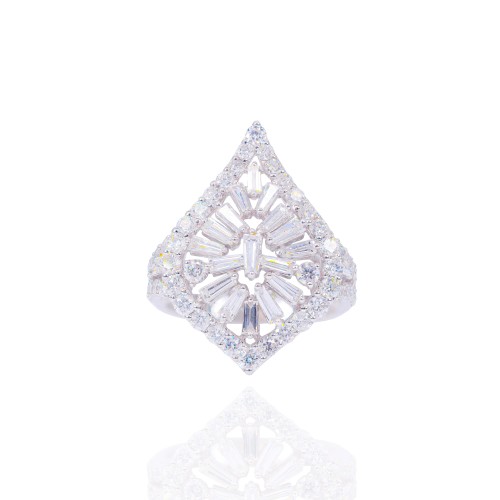 Mosaic Baguette Open Concept Diamond Ring 18KT Gold White Gold