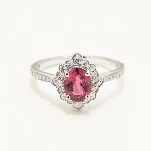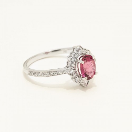 Oval Pink Tourmaline Halo Ring in 14ky Yellow Gold with Diamonds (1/2ct tw) CSRNG1521