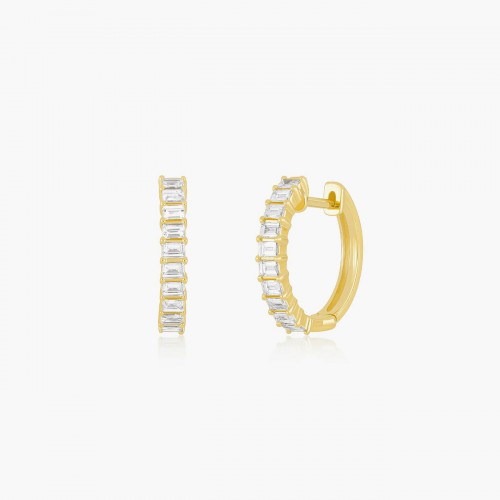 EF Collection Prong Set Diamond Baguette Hoop Earrings Yellow Gold