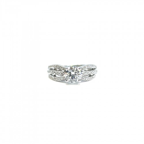 Fink’s Exclusive Round Diamond and Diamond Pavé Shank Engagement Ring in White Gold