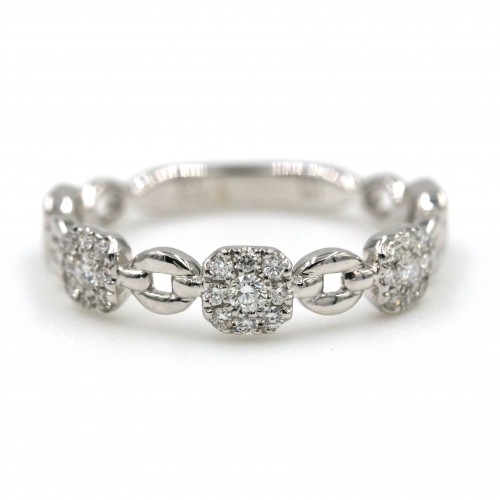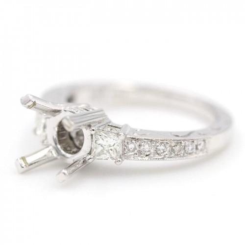 14K White Gold Natalie K Semi-Mount With 2 Trapezoid Diamonds And 22 Round Brilliant D=~.95Ctw