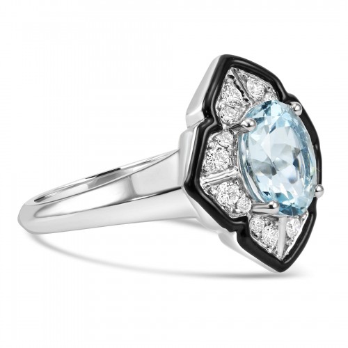 14K White Gold Irradiated Blue Diamond Halo Ring Etched Scroll Design 1D=~.90Ctw 28D=~.50Ctw