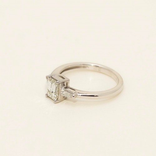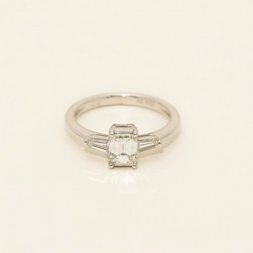 Emerald Cut and Baguette Diamond Engagement Ring in Platinum (1ct tw) DENG00674